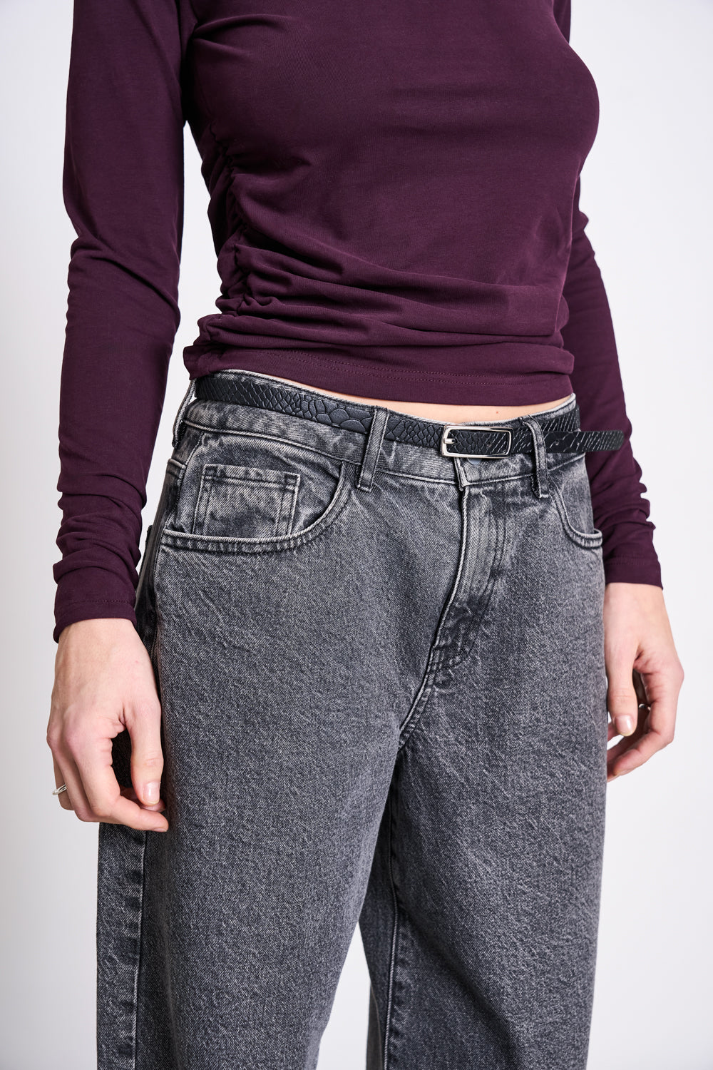 • Vervollständigen Sie Ihren Look mit diesem schmalen Gürtel NYBY in Lederoptik und einer glänzenden silbernen Schnalle. Sehen Sie stilvoll und gepflegt aus und halten Sie gleichzeitig Ihre Hose oder Ihren Rock an Ort und Stelle. Ein unverzichtbares Accessoire für jedes Outfit!