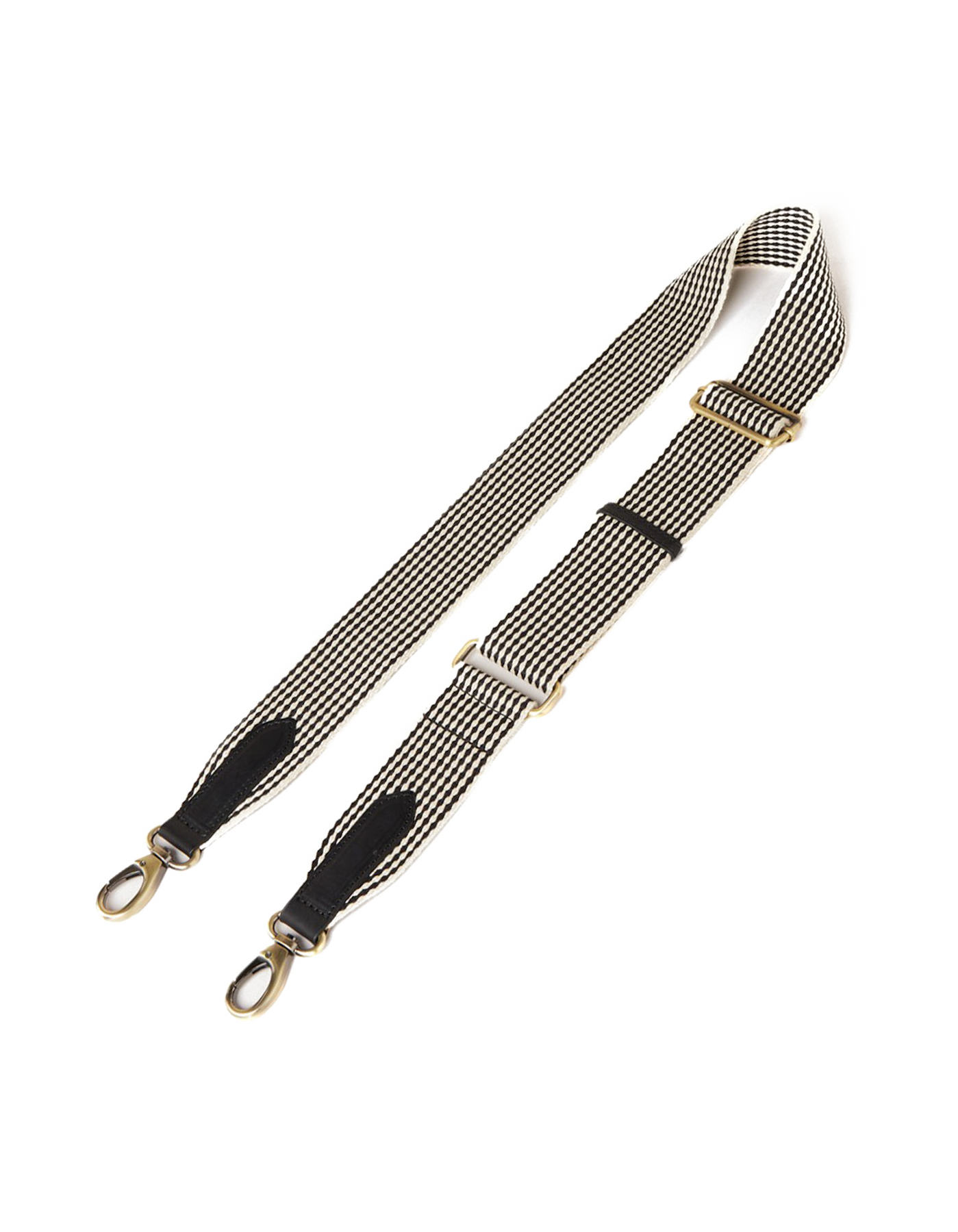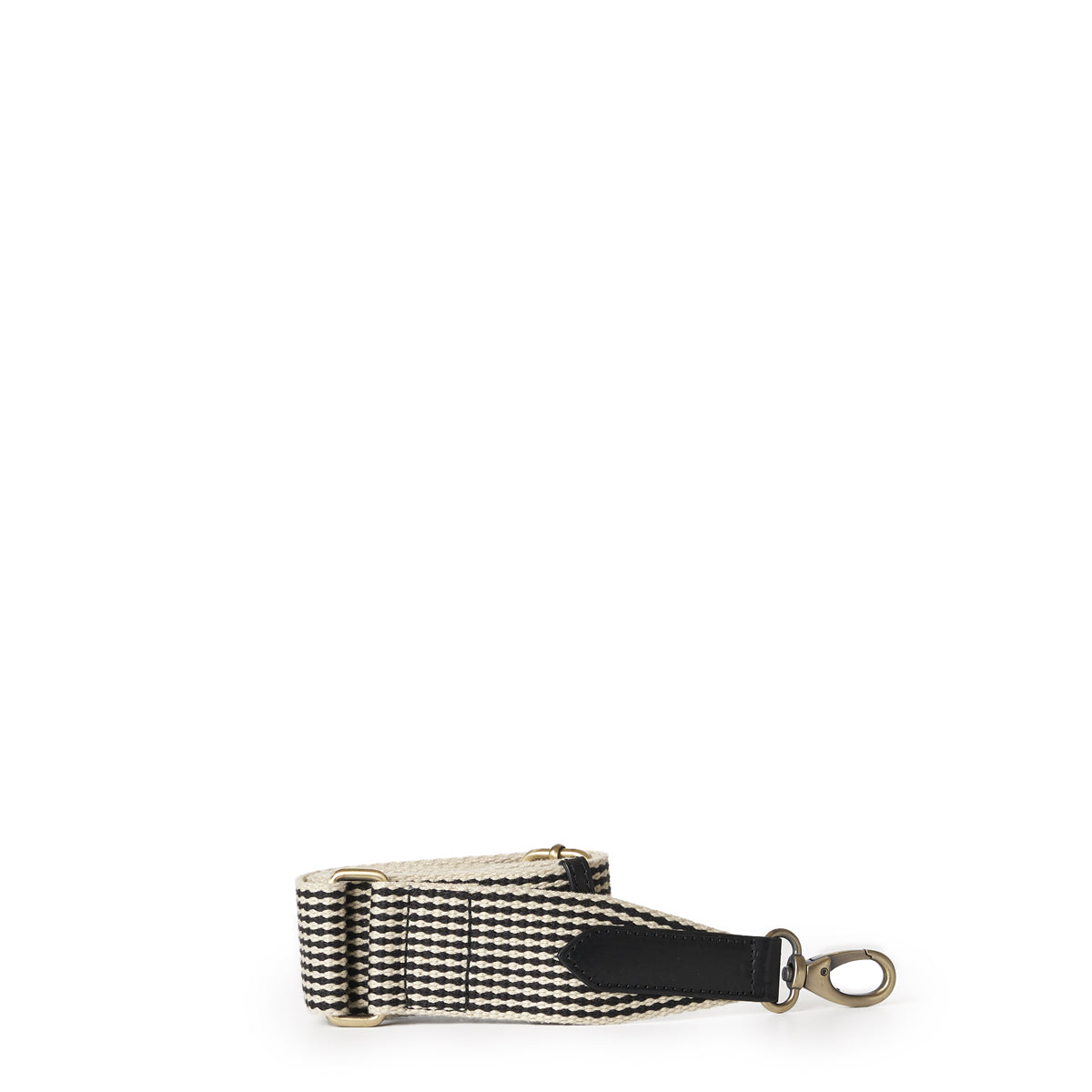 O MY BAG - Webbing Strap Black & White Checkered Black Leather