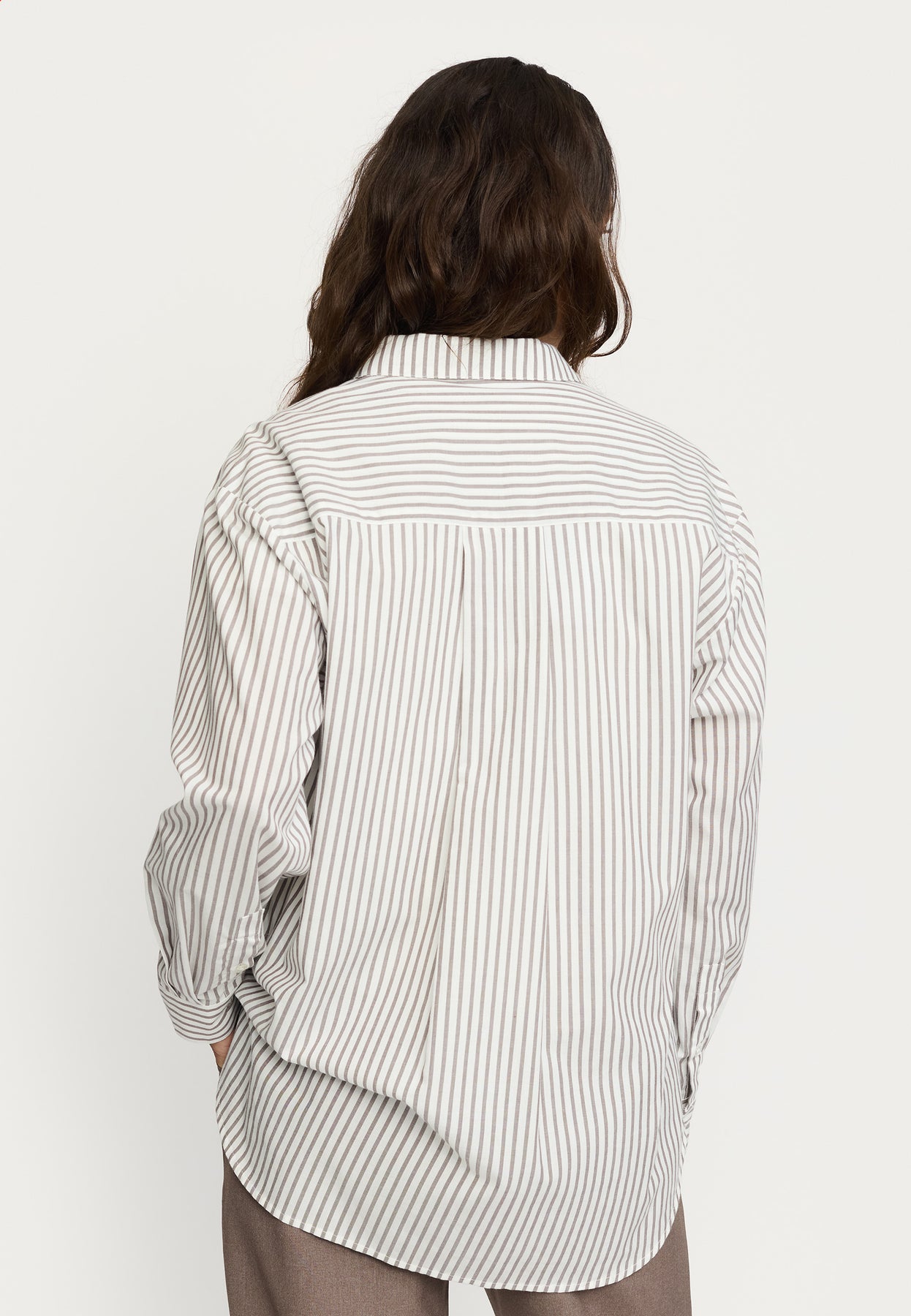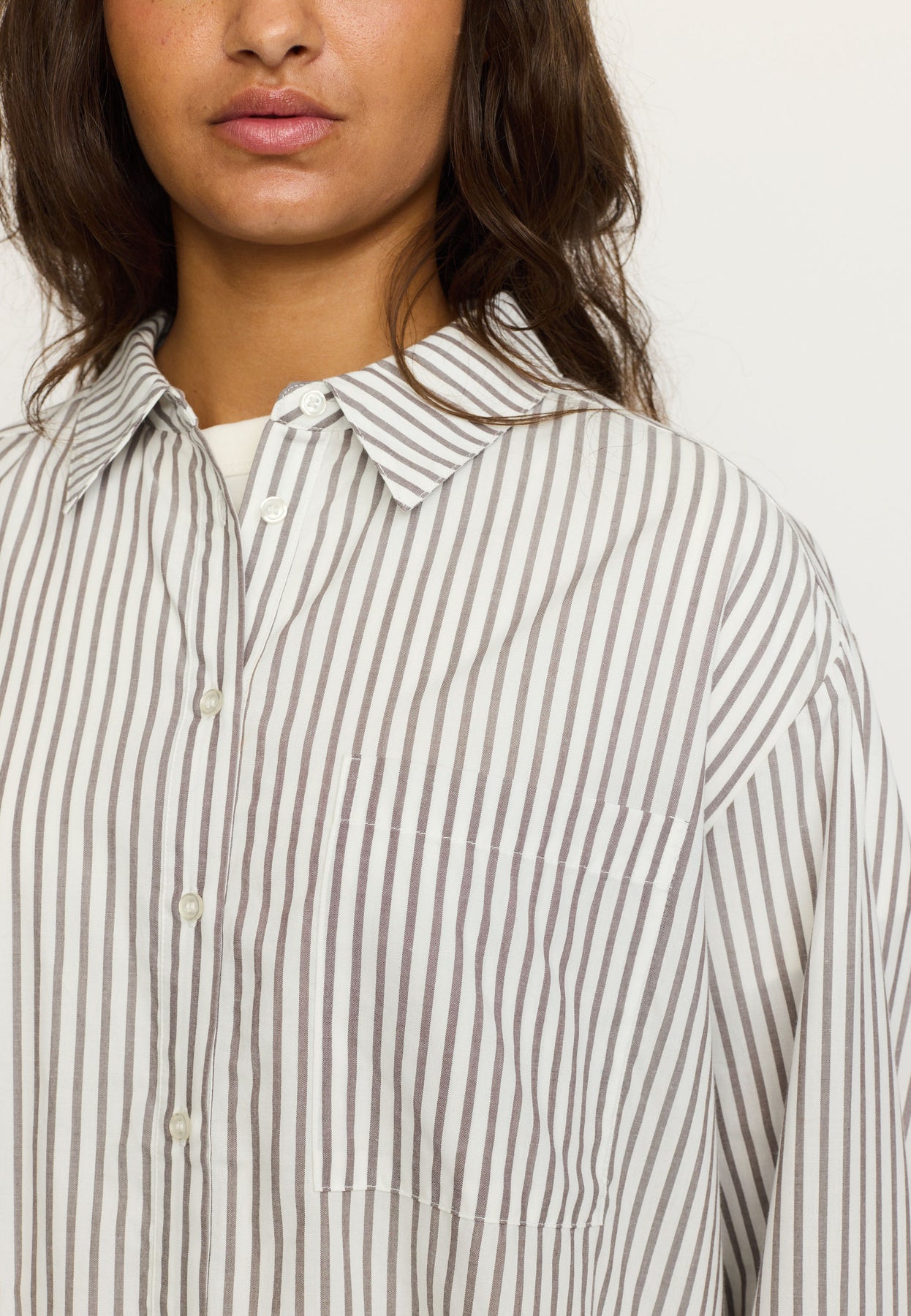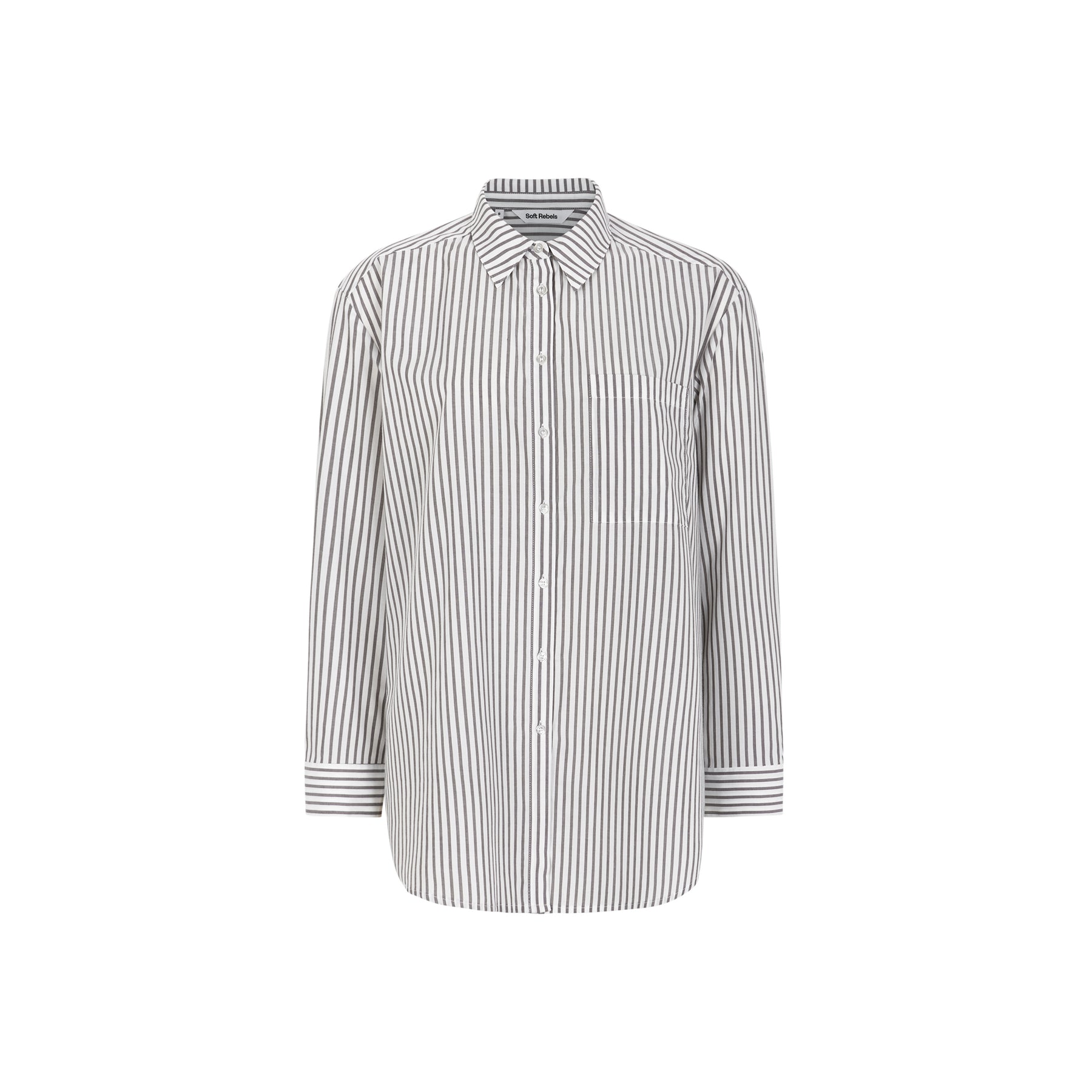 SOFTREBELS - Veronica Striped Shirt Snow White with Coffee Quartz