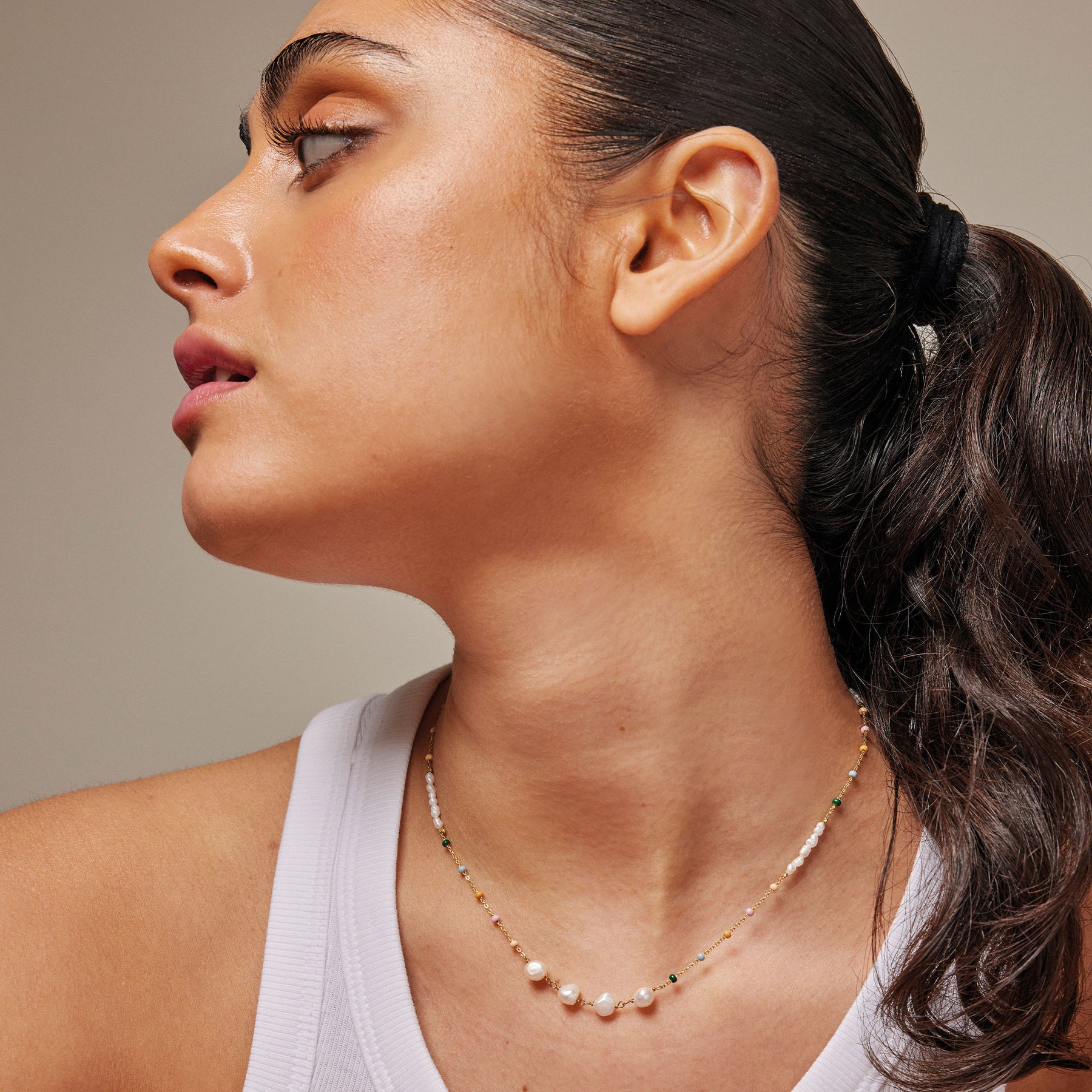 • Lola Perla ist ein einzigartiger Stil, der mit seinen feinen Süßwasserperlen und farbigen Emaille-Kugeln sowohl allein als auch in Kombination mit anderen feinen Halsketten ein schönes und farbenfrohes Detail ergibt.