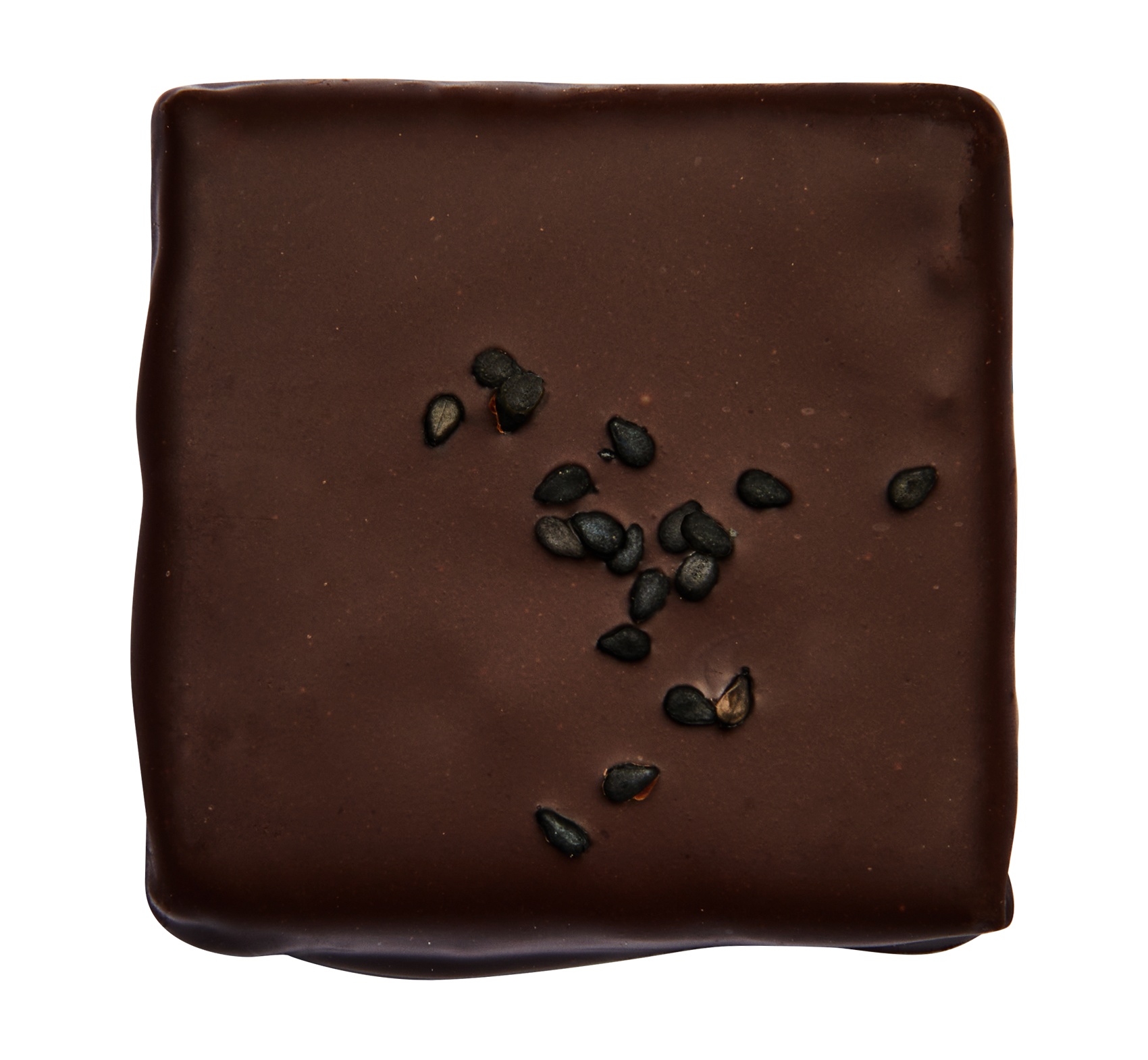 • Große dunkle Schokoladenquadrate, gefüllt mit Mandelbutter und gefriergetrockneten Kirschen.