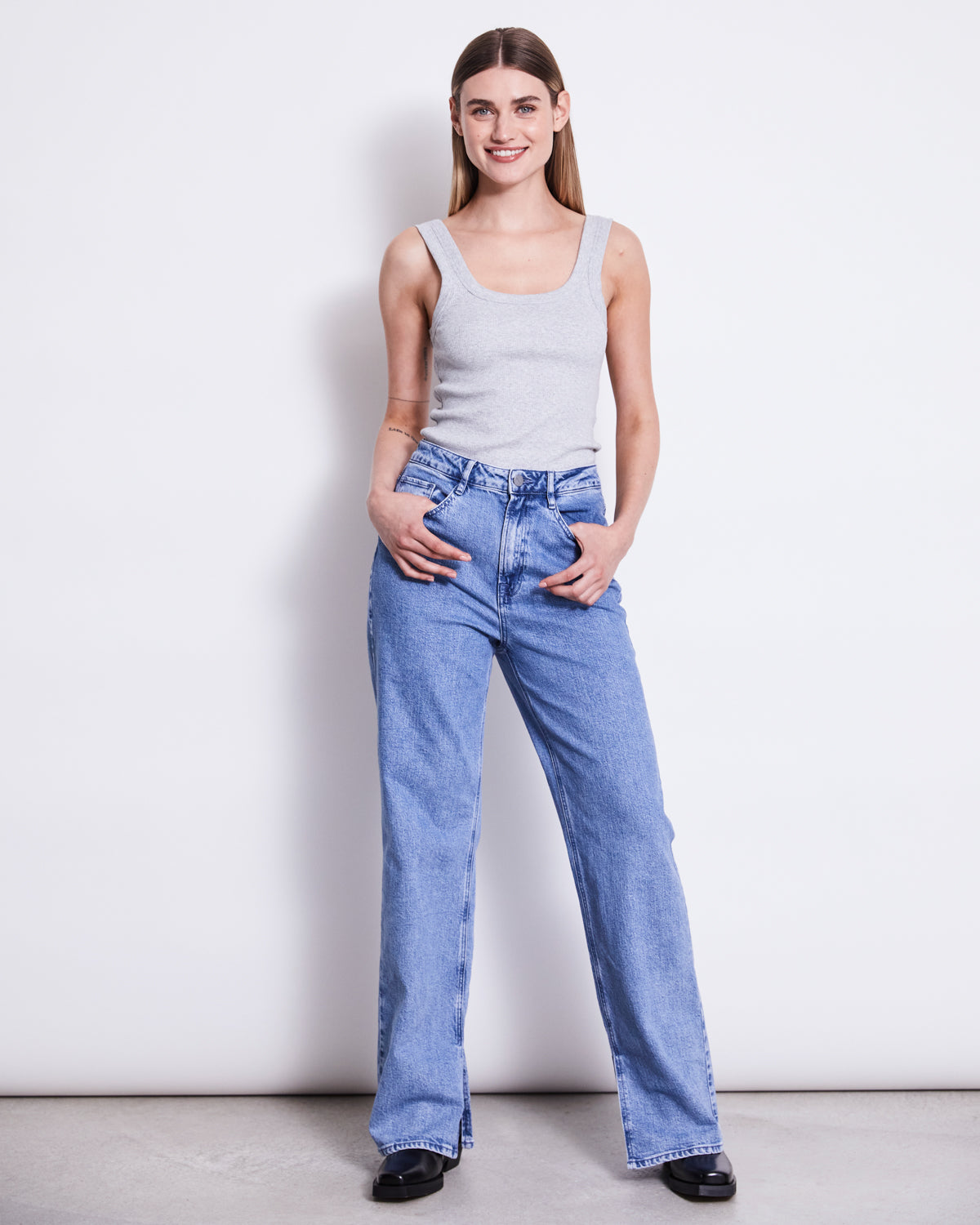 • Passform: Länge: 33, hohe Taille, weites Bein