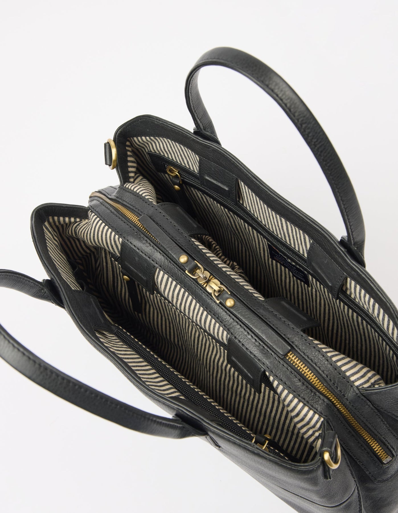 • Drei Hauptfächer, darunter ein gepolstertes Fach mit Reißverschluss für einen 13-14-Zoll-Laptop und zwei Seitenfächer mit Magnetverschluss