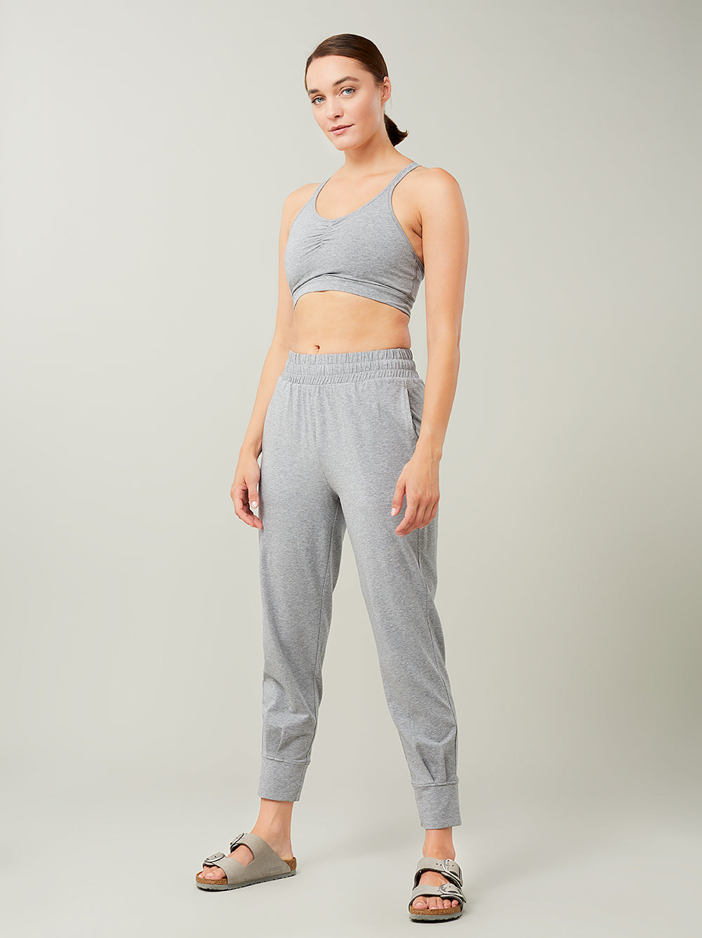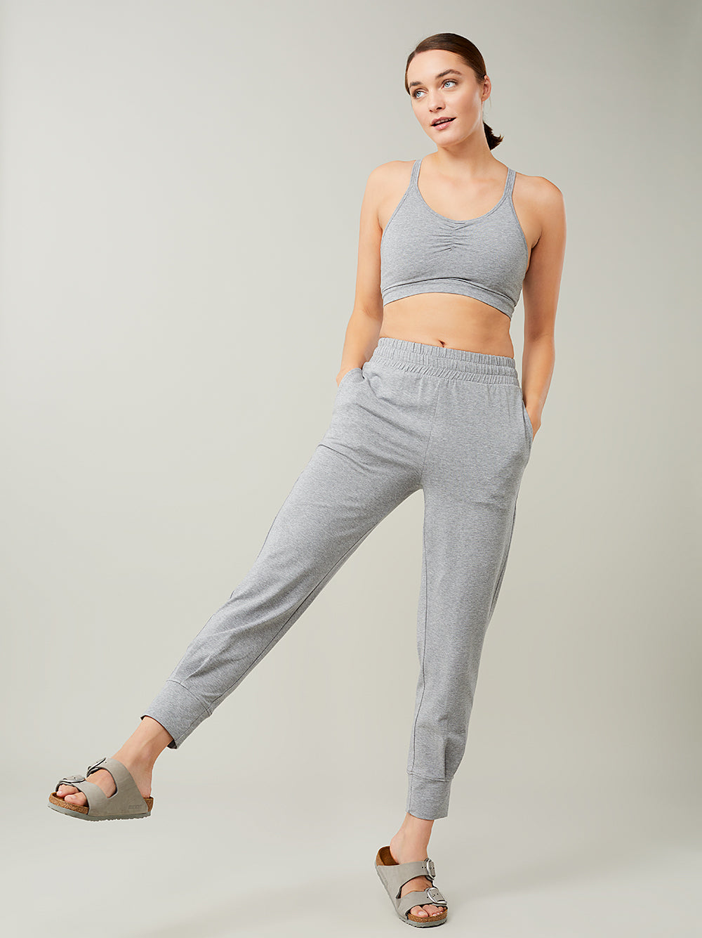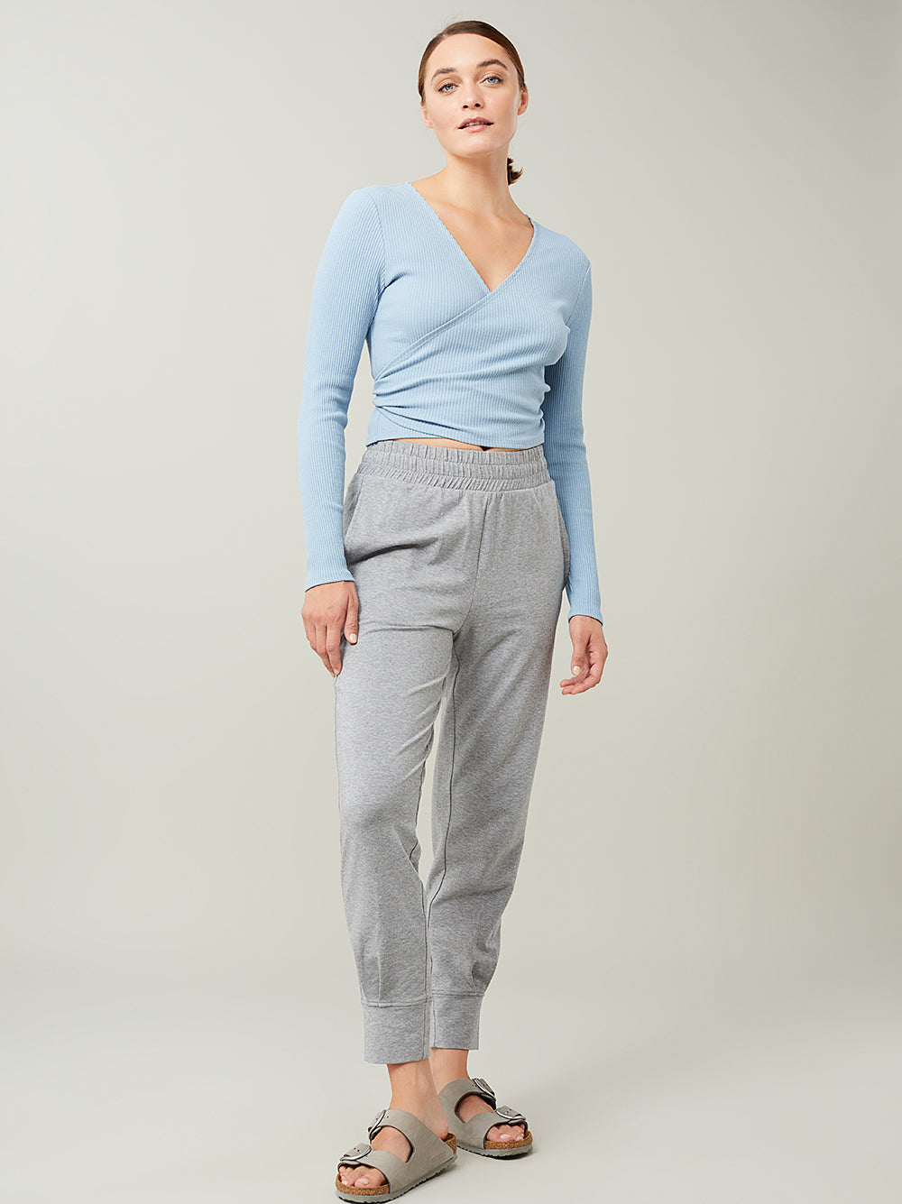 • Bündchen an den Knöcheln und breiten elastischen Bund