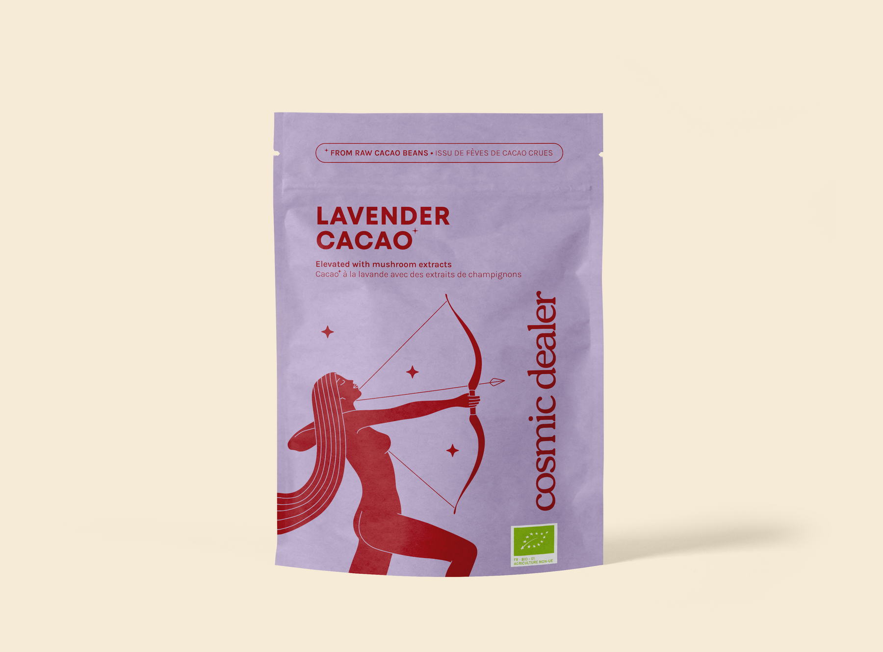 Lucuma-Pulver*, Kakaopulver aus rohen Kakaobohnen (41,5 %)*, Pilzextrakt-Pulvermischung* (Löwenmähne (Hericium erinaceus)*, Reishi (Ganoderma lucidum)*, Maitake (Grifola frondosa)*) (3,6 %), Salz, Lavendelblütenpulver (1 %)*